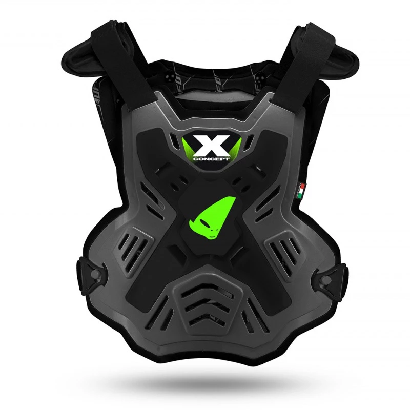 X-Concept è la pettorina studiata per avere il più alto grado di protezione col massimo comfort per tutti i piloti fuoristrada. 100% Made in Italy, è caratterizzata da una originale X ad incastro realizzata in plastica rigida che garantisce una notevole robustezza centrale senza penalizzarne la flessibilità, e dotata di supporti protettivi laterali, chiusura munita di sgancio rapido, spalline removibili di ampia dimensione che la rendono estremamente protettiva e versatile, e protezione posteriore interna in materiale micro shock, mentre l’accurato design ergonomico ne esalta la grande libertà di movimento e l’ottima aerazione.