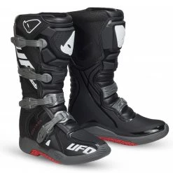 Stivali per Offroad, protettivi e leggeri con suola a scafo in PU iniettato e saldato. Tomaia resistente al taglio e all’abrasione. Inserti in TPU nella zona della tibia, della caviglia e cambio marcia per la massima protezione. 4 agganci con regolazione micrometriche. Inserto in materiale scamosciato per protezione dal calore. Suola in gomma a doppia densita` altamente resistente all’abrasione. Interno realizzato in mesh 3D per migliorare il comfort e l’assorbimento del sudore . TECNOLOGIA: Stivali cross altamente protettivi, ideali anche per l’enduro. Eccezionale resistenza al taglio e all’abrasione. Rivestimento protettivo nelle zone tibia, caviglia e cambio marcia. Paracalore in pelle scamosciata resistente all’abrasione. Sistema di chiusura con 4 ganci a regolazione micrometrica per ottenere rapidamente la perfetta vestibilità. Suola a scafo in gomma a doppia densità per una calzata precisa e massimo controllo, altamente resistente all’abrasione e agli olii. Interno foderato in tessuto tridimensionale ad alta resistenza all’abrasione che garantisce traspirabilità ai massimi livelli, funzionalità e comfort. PU (poliuretano) a doppia densità iniettato e saldato per una calzata precisa, antiabrasione e resistente agli olii. TPU (poliuretano termoplastico) antiabrasione. Fodera interna in Mesh 3D traspirante e antiabrasione.